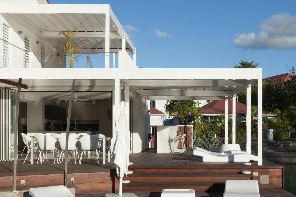 Enfin, la structure spéciale Gennius Roomy a été choisie pour protéger l'emplacement du bateau. Puisque le client n'avait pas besoin d'une couverture ouverte, un modèle fixe a été choisi, équipé d'un système spécial d'accrochage de la toile, facilement amovible par le client en cas d'événements atmosphériques de grande importance, relativement fréquents pour la région lors de la saison des ouragans.