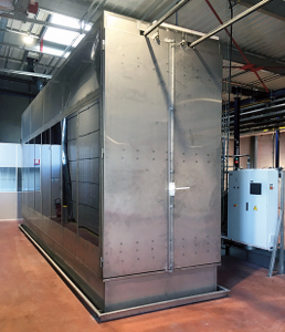 Opérationnelle début juin 2018, la nouvelle unité de laquage de Sothoferm répond aux engagements qualité et environnementaux de l’industriel ; tunnel de traitement de surface © Sothoferm