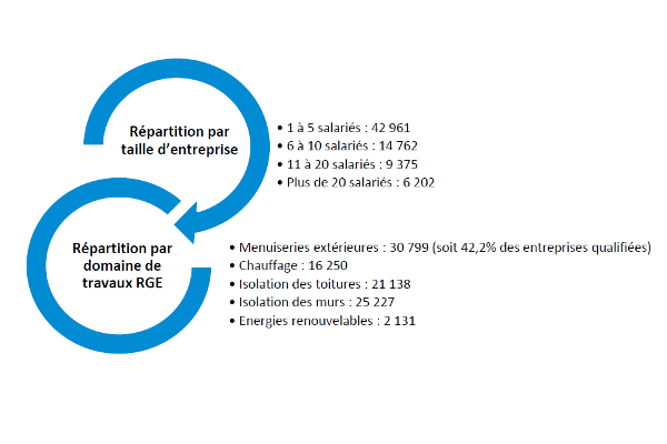 Au total, 73 290 entreprises ou artisans sont aujourd'hui titulaires d'une ou plusieurs qualifications QUALIBAT, représentant un total de 128.000 qualifications, dont 61 611 qualifications RGE. Les commissions d'attribution de la qualification ont continué d'assurer, à l'entrée de la démarche de qualification, une première sélection, qui représente un premier niveau de sécurité :