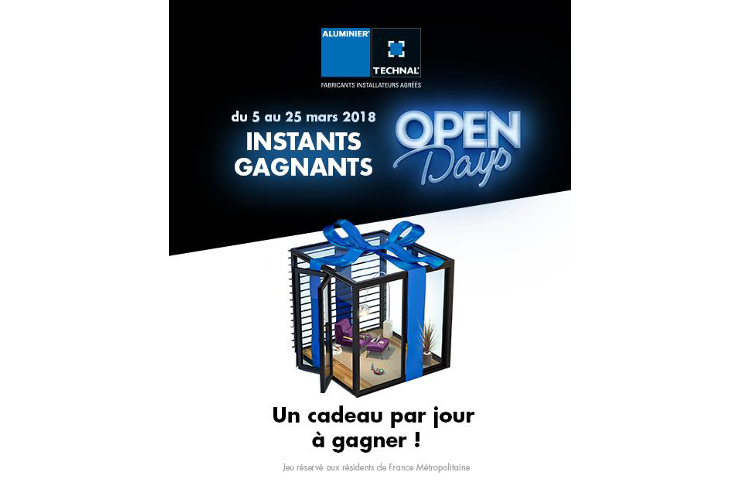 Baptisée " Open Days ", elle a pour ambition de renforcer la visibilité et l'animation dans les points de vente de ses 230 Aluminiers Agréé Technal et Maisons de Lumière. Cette opération originale sera relayée via des jeux-concours en magasins et sur les réseaux sociaux pour accroître la proximité entre les professionnels Technal et les particuliers :