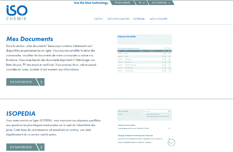 Par sa forte capacité d'innovation et son expertise en étanchéité, Iso-chemie contribue à l'efficacité énergétique des bâtiments et favorise l'utilisation durable des ressources. Le développement de solutions éco-énergétiques s'accompagne de formations et de séminaires menés par l'entreprise. Support technique performant et personnalisé, Iiso-Portal renforce le savoir-faire d'Iso-Chemie en matière d'étanchéité..