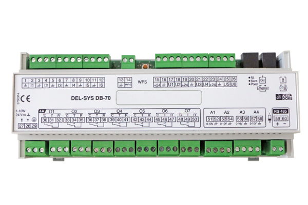 Le contrôleur IP DB-70 offre des fonctionnalités de pilotage optimales pour les sites de moyenne et petite taille a? un coût réduit. Il est particulièrement adapte? a? la gestion multi-sites en offrant la possibilité de créer un catalogue de modèles d'application pouvant être chargés à distance sur plusieurs bâtiments. Il s'associe à une application WSA (Web Services Automation) qui permet d'agir sur le confort via une interface web intuitive en local ou à distance, sur tablette ou smartphone.