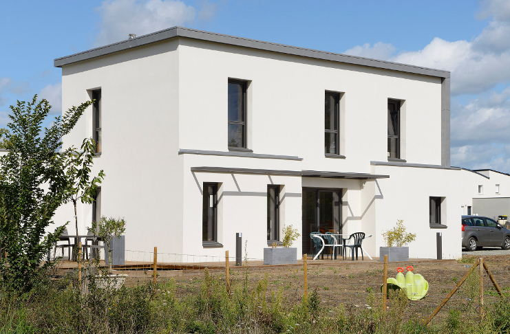 Il s'agit d'une maison située dans les Pays de la Loire à Saint-sylvain-d'Anjou dans le département du Maine-et-Loire, d'une surface de 148,7 m2, équipée à 100% chauffage électrique effet joule. Bénéficiant d'un bâti performant, la construction est dotée d'un panneau photovoltaïque assurant l'autoconsommation à hauteur de 90,2%. cette maison, la première du genre dans le département, a obtenu le niveau d'énergie E2 et le niveau Carbone C1.