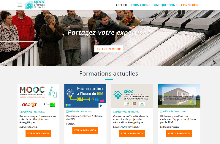 Sept nouvelles formations en ligne sont proposées sur la plateforme " MOOC Bâtiment Durable ". " Après le succès des deux premiers MOOC lancés début 2017, l'Ademe, le Plan Bâtiment Durable et l'ensemble des professionnels engagés au sein de la plateforme (...) poursuivent le développement de ce projet qui contribue à la montée en compétences des professionnels ", explique l'Ademe dans un communiqué.