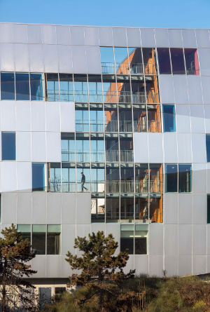 Pour les logements sociaux Montmartre Housing (Paris 18e), réalisés par les architectes André Kempe et Louis Lacorde (Atelier Kempe Thill), et Fres Architectes, Technal a imaginé des fermetures de loggia permettant d'équiper les 50 appartements de jardins d'hiver filants. La menuiserie sur-mesure est fixée par deux rails haut et bas et équipée d'un vitrage trempé de 15 mm.