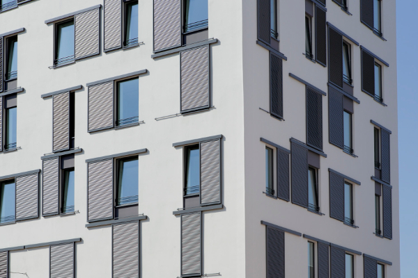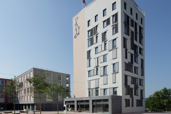 Conçus par "l'Atelier ww Architekten SIA AG", les bâtiments du Salmenpark répondent ici au standard certifié Minergie (label suisse), privilégiant le confort et les exigences thermiques de l'écoconstruction, et ont choisi les volets coulissants Sun-Max48-V d'Ehret pour l'habillage harmonisé et qualitatif des façades.
