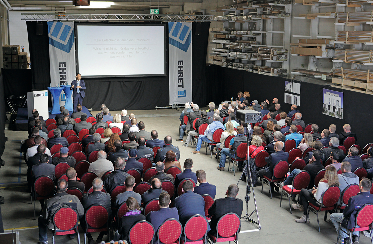Venus d'Allemagne, de France, du Luxembourg, d'Autriche et de Suisse, quelque 150 clients et revendeurs ont mis en jeu leur processus de décision, arbitrée par Urs Meier, ancien arbitre de la FIFA et de l'UEFA, sous la thématique "Entre les fronts - Savoir décider sous la pression", un parallèle direct entre le monde du football et celui de l'entreprise. Manual Meier, PDG d'Ehret, a enchaîné en soulevant la question suivante : " qui sont les gagnants et les perdants en cas de décision relative à l'utilisation des nouvelles technologies ? ". Discussion animée et visite des unités de production ultramodernes d'Ehret, où sont fabriqués plus de 100 modèles de volets battants, coulissants ou pliables commercialisées dans le monde entier... en fin journée, Manual Meier a remis le prix du jeu concours organisé à cette occasion à l'heureux gagnant.