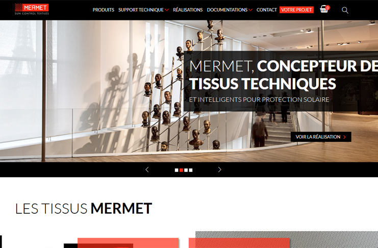 La nouvelle ergonomie du site vient valoriser l'accessibilité aux produits Mermet et fait la part belle aux tissus privilégiant les réalisations et l'accès au produit le mieux adapté pour les projets et performances recherchées par les clients et prescripteurs.