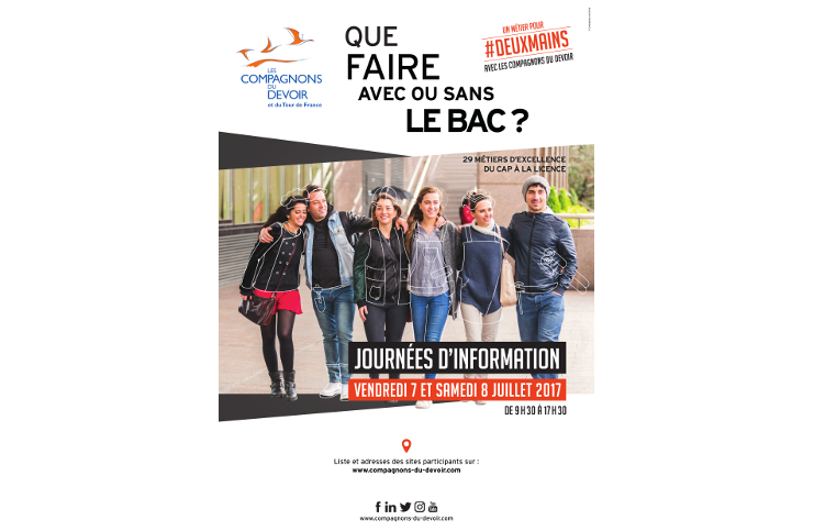 Pour répondre aux questions de tous ceux qui s'interrogent sur leur orientation professionnelle, les Compagnons du Devoir et du Tour de France organisent, les 7 et 8 juillet de 9h30 à 17h30, des "Journées d'Information" dans 40 Maisons réparties sur toute la France.