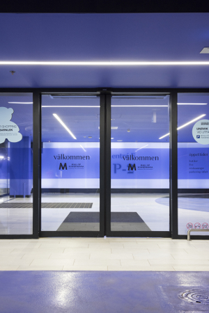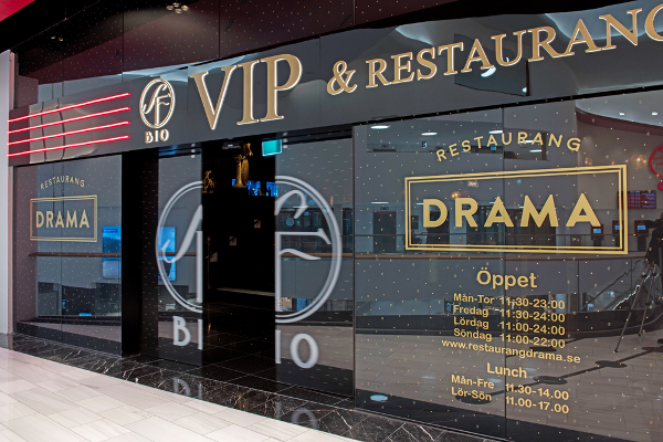 Les " chefs d'oeuvre " de Geze au sein du Mall sont certainement les portes qui mènent aux 11 cinémas et au restaurant VIP situés au 2ème étage. Le plus grand avec 500 places assises, le cinéma IMAX, fait sa première apparition en Scandinavie - une apparition remarquée puisqu'il est le lieu le plus prestigieux du Mall. Ses portes automatiques coulissantes d'entrée, fournies par Geze en collaboration avec AB Fasadglas, arborent sur toute leur surface le logo rond sérigraphié SF BIO, principale chaine de cinémas en Suède.