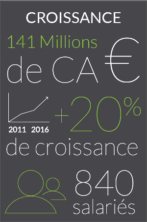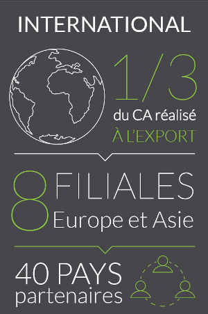 Sa croissance forte (+20% en 5 ans) et son rayonnement ont permis au groupe de se positionner aux côtés des ETI françaises résolument tournées vers l'export : en quatre ans, le groupe a augmenté la part de son chiffre d'affaires à l'export de +78% !