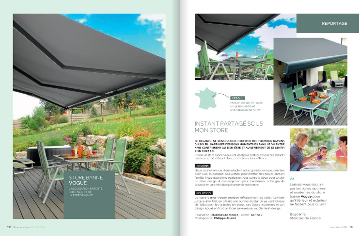 Sylvie Balende, responsable communication, expose le repositionnement haut de gamme de l'enseigne à travers cet outil qui se veut inspirationnel : " Parce que la maison reste une valeur forte et un refuge pour toute la famille, le réseau Storistes de France apporte des solutions de protection solaire et thermique et de sécurité qui embellissent et rendent plus sûr chaque appartement et demeure tout en accroissant leur valeur patrimoniale. ".