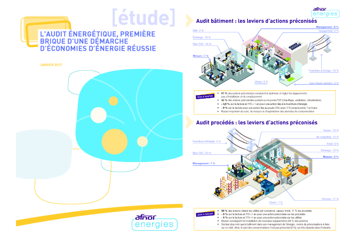 AFNOR Energies, en tant que bureau d'études qualifié, a réalisé des audits énergétiques selon la norme volontaire NF EN 16247 et livre ses conclusions suite à l'analyse de 72 rapports émis entre 2015 et 2016. Le principal enseignement est qu'un audit énergétique met en lumière un gisement de 20 à 30 % d'économies, qu'elles soient exprimées en kilowattheures ou en euros.