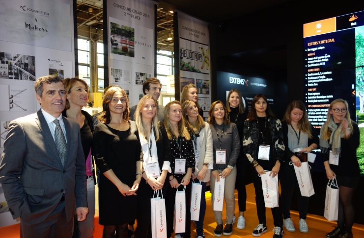 Le partenariat et concours lancé auprès des étudiants de 2e année de l'Ecole Supérieure d'architecture intérieure et de design CRÉAD à Lyon, associe la créativité des futurs architectes d'intérieur au monde de l'industrie. La réussite de ce concours et la qualité des projets ont révélé les jeunes talents qui se sont organisés en 4 groupes de travail pour réaliser des planches d'inspiration (Moodboard) à partir d'un des trois domaines d'activités de Kawneer - résidentiel, tertiaire, ERP - et de six tendances définies (Landscape, Arty Chic, Easy Urban, Makers, Néo Nomade et Cr@sy). Le jury Kawneer était composé de Bertrand Lafaye et de Aïda Berrada, Responsable des Ressources Humaines Kawneer.