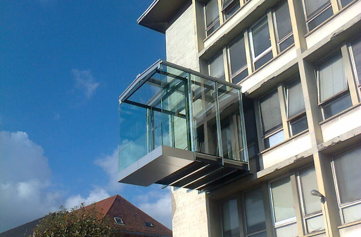 Fédérés autour de la rénovation de la façade sud de leur école, une centaine d'étudiants architectes et ingénieurs de l'INSA Strasbourg ont imaginé un balcon combinant une greffe habitable et une double peau. L'enjeu était d'effectuer une rénovation énergétique tout en conservant les grandes baies vitrées des années 50 pour leur intérêt patrimonial et leur apport thermique. A l'arrivée, c'est une extension entourée de verre, posée sur une dalle en béton dans la continuité d'un bureau, qui prolonge le deuxième étage du bâtiment sur près de cinq mètres.