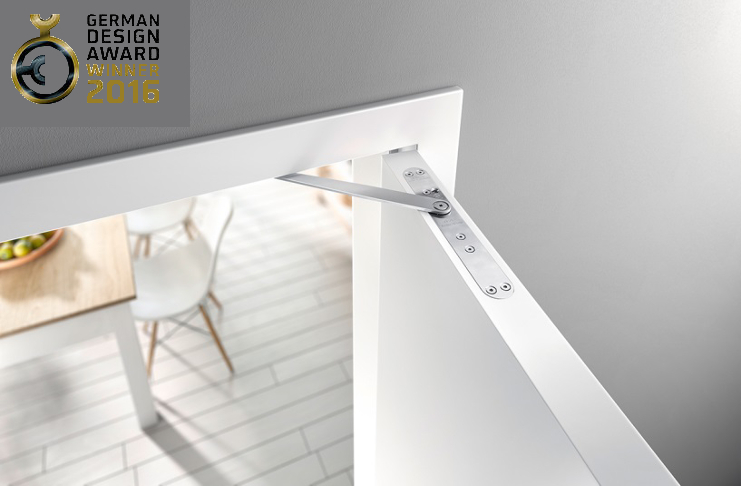 Double confirmation pour le design exceptionnel de GEZE ActiveStop ! L'amortisseur de portes intérieures à l'ouverture et à la fermeture remporte le German Design Award 2016 dans la catégorie "Matériaux de construction".