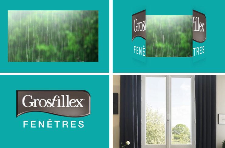 Pour rappel, la courte séquence est pensée de façon à montrer l'efficacité des fenêtres ; on y voit un paysage pluvieux avec une ambiance sonore de vent et de pluie, puis le logo Grosfillex se referme telle une fenêtre nous isolant complètement du bruit extérieur et des intempéries.