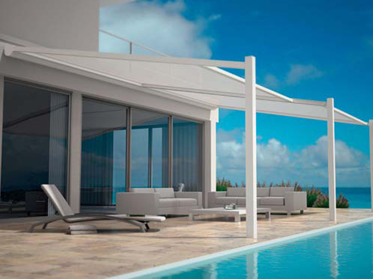 Stylée et minimaliste, la Lapure® est constituée d'une toiture en store protectrice, reposant d'une part sur des colonnes en aluminium élégantes et discrètes (sans liaisons latérales) et d'autre part, ancrée sur une façade existante. Lorsque la toiture est fermée, elle offre une parfaite protection contre le soleil, le vent ainsi que la pluie, et permet une fois ouverte de profiter du soleil, sans être gêné par la structure légère et discrète.