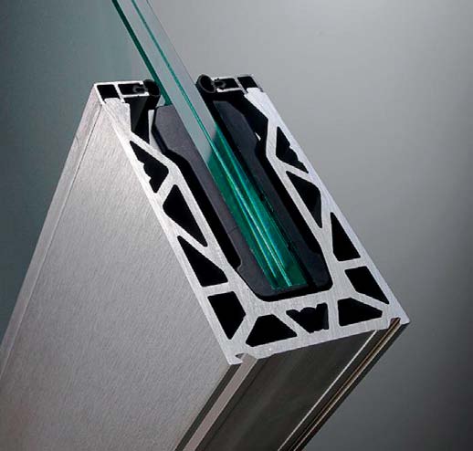 Le système Defender de Logli Massimo est un système en profilé d'aluminium breveté extrêmement résistant et de dimension contenue, perforé pour réaliser des garde-corps en verre avec ancrage au plancher ou au mur.