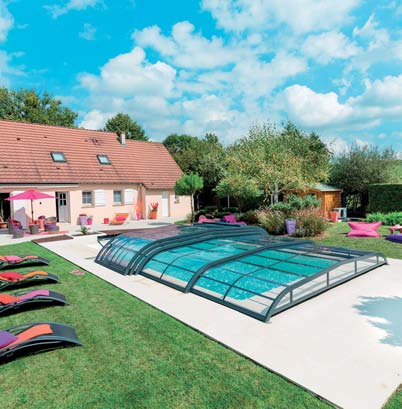 La collection Elliptik comprend les modèles phares, avec ou sans rails, fixes ou télescopiques, semi-plat, bas, mi-hauts, ou hauts, les abris de piscine galbés, aux configurations et des fonctionnalités multiples. Lorsque les abris de piscine de la collection Elliptik sont télescopiques, leurs modules, indépendants les uns des autres, permettent de dégager la piscine en totalité ou en partie, dans un sens comme dans l'autre, pour s'adapter au mieux à tous les besoins de fonctionnalités. L'abri bas est doté de modules faciles à manoeuvrer pour couvrir et découvrir la piscine avec motorisation intégrée à énergie solaire. Avec une légère réhausse design en partie centrale, il procure un grand confort d'utilisation, puisqu'il permet plus de hauteur en partie axiale. Une fois la piscine découverte, l'encombrement au sol d'un abri semi-plat est réduit à son strict minimum.