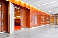 Le prix spécial du jury a été attribué au Square Brussels-Meeting Centre du bureau d'architectes A.2R.C (photo). Le Square est devenu, avec ses 55 000 m² d'espace au coeur de Bruxelles, la plaque tournante des conférences et congrès internationaux organisés dans la capitale. Sa représentation visuelle et son nom sont précisément donnés par le cube en verre de 13 m d'arêtes lui servant d'unique entrée. Ce cube est fait en double vitrage de verre extra-clair AGC, Planibel Clearvision, revêtu d'une couche superisolante TopN+. A l'intérieur, chaque auditorium possède une couleur unique : une paroi de verre laqué en Lacobel Rich Aluminium mène au Silver Hall tandis qu'une cloison de Lacobel Rich Copper conduit au Copper Hall.