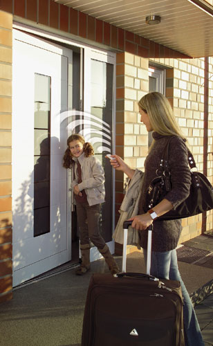 compatibles avec le système la technologie radio IO-Homecontrol® pour l'ensemble de ses portes d'entrée en aluminium et sa porte de garage automatique. Ces dernières peuvent être déverrouillées en toute simplicité à l'aide d'une télécommande puis ouvertes d'une légère pression. Basé sur des signaux radio, ce système offre de nombreux avantages : l'installation est rapide puisqu'il n'est pas nécessaire de faire des saignées aux murs pour la pose du câble. Une solution en rénovation, qui s'applique avec la même efficacité au neuf. La technologie radio IO-Homecontrol® permet un contrôle à distance des volets, portes (ou chauffage), grâce à un système de commande sans fil entièrement automatisé ; elle organise leur fonctionnement simultané et interconnecte leur programmation pour une optimisation des dépenses énergétiques et renouvelle ainsi le concept de "maison intelligente". Pour une sécurité optimale, ces composants émettent un rétro-signal indiquant s'ils sont effectivement fermés ou activés. Hörmann