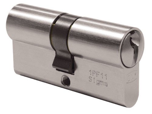 seule la carte de sécurité du fabricant, livrée avec le système, autorise la reproduction de la clé d'origine. Muni d'un panneton de verrouillage qui autorise l'accès en cas de présentation d'une clé adaptée, le cylindre Sigma se compose d'un piston central AB, qui protège le système des méthodes intelligentes d'ouverture, de pistons de blocage, d'un piston de boîtier FB, de ressorts qui amènent les pistons dans la bonne position de fermeture, et de pistons de contrôle qui vérifient les autorisations lors de l'interrogation de la clé. Le système DOM RS Sigma répond à tous les besoins de sécurité (protection anti-perçage et anti-arrachement). Pour élargir ses possibilités, le système DOM RS Sigma est compatible avec la technologie d'accès électronique (marque DOM), en enfichant simplement un tag clipTac sur la clé. Disponible en option dans une construction modulaire, il permet alors d'équiper ultérieurement des portes qui n'ont pas pu être mesurées et/ou autorisent des modifications réalisées simplement, grâce aux extensions de cylindres modulaires. Le cylindre est proposé sur demande dans des finitions spéciales. DOM Sicherheitstechnik