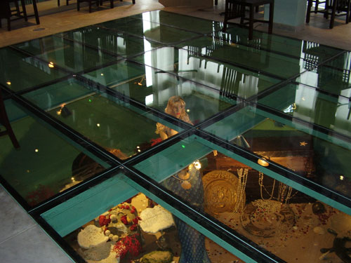 Sous le plancher de verre, la mer...
