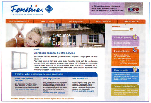 Cette année 2007 voit cette communication s’étoffer encore davantage et devenir plus offensive, pour renforcer la notoriété. Le responsable du réseau précise : « l’an dernier, nous avons dédié une partie du budget communication dans une campagne de publicités imprimées et parues dans les magazines de décoration principalement. Cette année, nous avons voulu frapper plus fort, puisque nous sommes passés à la télé pour le 1ère fois depuis 12 ans, sur du sponsoring d’émission (notamment « Question pour un champion », « Côté maison »), ainsi que dans une émission de radio (sur RTL). Ce sont des expériences complètement nouvelles pour Fenêtrier® Veka et de la part des magasins partenaires ». Cette importante campagne de communication, sous forme de jeu, pour gagner des fenêtres, s’est aussi déclinée dans certains télé-hebdos, les « tv-mags » et le retour a été très positif. « Nous voulons « booster » un peu les contacts… Nous avons eu beaucoup de retours, les diverses parutions ont eu un impact assez fort vis à vis de la visibilité, nous le vérifions par le retour du coupon notamment. Nous allons terminer l’analyse de cet impact, mais en termes de notoriété, de passage, de nombre de contacts à travers notre site Internet ça a été très fort ». Cette année, contrairement à l’an passé, le réseau Fenêtrier® Veka n’a pas acheté de référencements, de liens commerciaux auprès des divers moteurs de recherche. Cependant, grâce à la campagne publicitaire, le nombre de contacts recueillis et les visites sur le site sont encore plus importants ! Dans la foulée des offensives marketing, Veka vient tout juste d’apporter d’importants changements au site Internet dédié au réseau Fenêtrier®. « Au début, nous avions le site www.veka.fr, où étaient hébergées des pages dédiées au réseau. Puis, nous avons créé, début 2006, un portail dédié au réseau Fenêtrier® Veka : www.fenetriersveka.fr. Au départ, le site était relativement simple et sommaire, avec quelques pages. Nous venons tout juste de la changer complètement, avec une nouvelle dynamique,