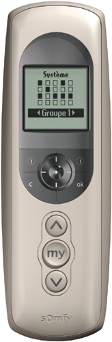 La radiocommande Telis Composio RTS de Somfy permet de piloter les ouvertures de la maison en créant des groupes d’ouvertures motorisées, par zones, de les nommer et de les visualiser. Chaque groupe de produits (jusqu’à 20 groupes) peut être nommé à sa guise et être identifié facilement grâce à l’écran LCD. D’un seul geste, tous les composants d’un groupe descendent, montent ou adoptent une position favorite, simultanément. La radiocommande possède les fonctions montée, descente, arrêt, position favorite "my", pour chaque produit et pour chaque groupe ; par exemple, un groupe pour tous les volets des chambres des enfants, un autre groupe pour tous les volets et stores du salon, etc. Quatre finitions sont disponibles : Lounge, Pure, Silver, Patio. Somfy