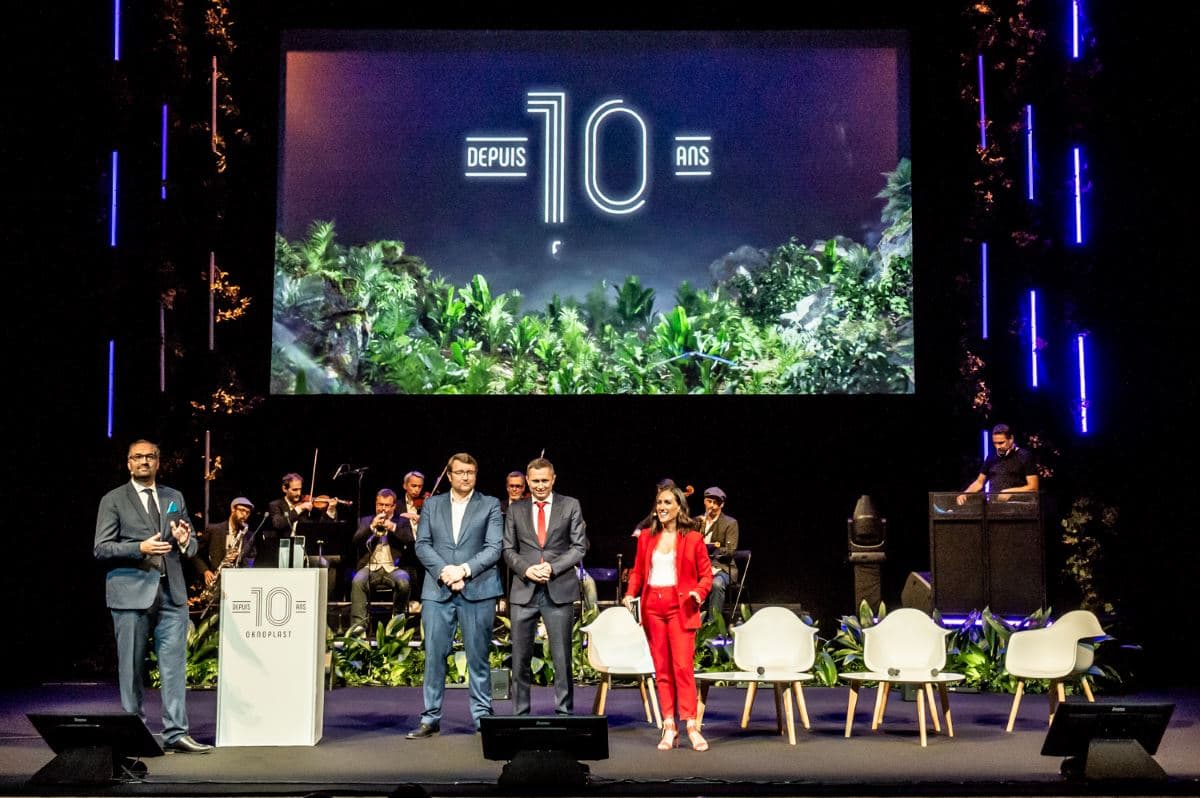 Lors de la soirée des 10 ans d’Oknoplast France, Gilles Carré-Roué, président Oknoplast France, accompagné de Mikolaj Placek, président Groupe et Tomasz Radecki, directeur commercial Groupe, ont eu le plaisir de remettre 4 Trophées sur les thèmes du digital, de l’écologie, de la meilleure progression et de la plus belle success story :