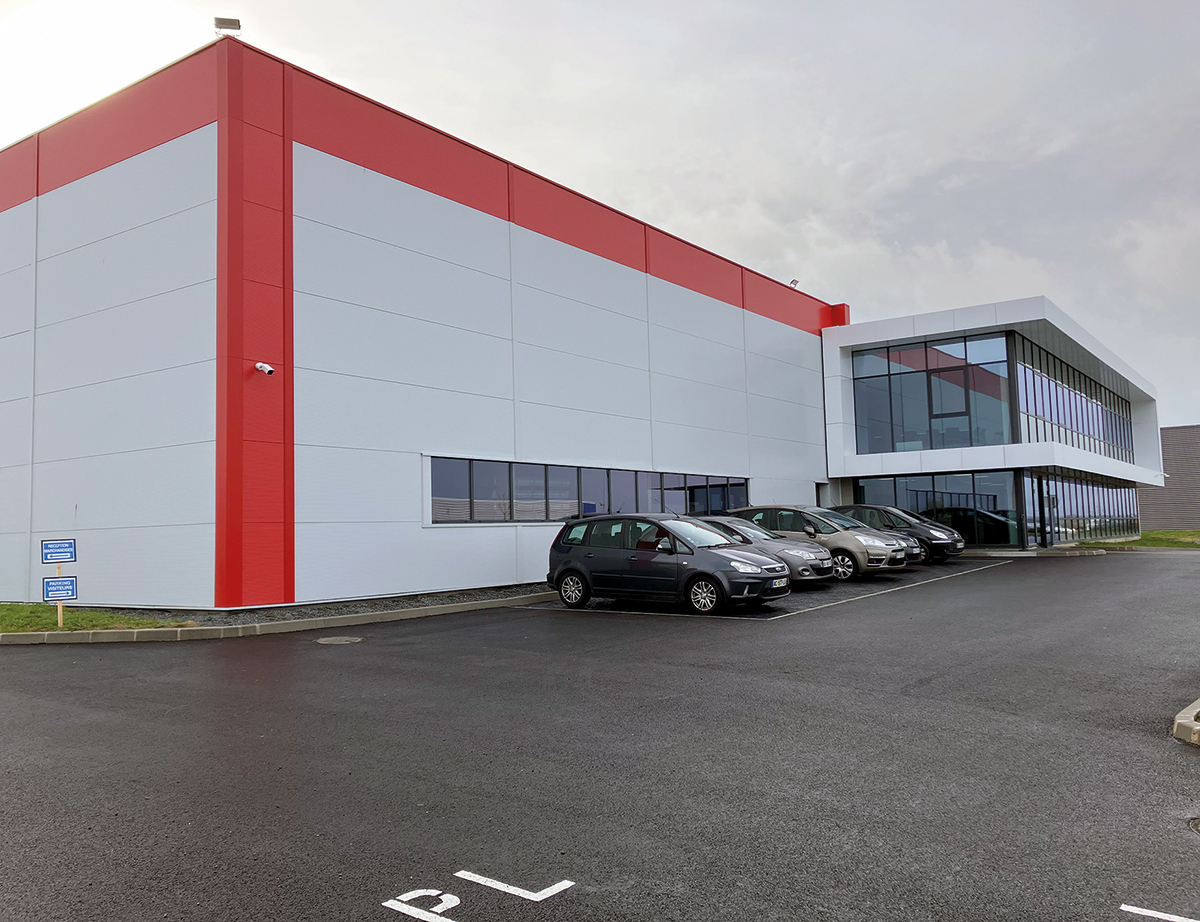 © VMA/A.B. - En cohérence avec les valeurs sociétales et environnementales du Groupe Isosta et sa stratégie REPAN de recyclage des panneaux sandwich, le parc industriel de Sipo épouse cette démarche forte de développement durable avec la création d’une zone humide… et un bâtiment BBC avec façade active, véritable laboratoire géothermique