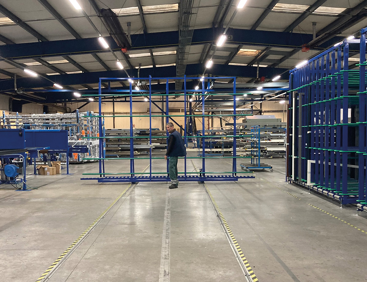 Gervais Gendre nous en dit plus : « il faut être à l’écoute pour faire évoluer nos solutions. Ainsi aujourd’hui, nous proposons des transstockeurs de produits longs allant jusqu’à 14 m car cela répond à un besoin. De plus, pour faciliter la vie des opérateurs et limiter les erreurs, nous avons développé un système de stockage et de regroupement de profils qui va permettre de réunir les 4 profils d’une menuiserie dans une luge commune et ainsi limiter l’emploi de chariots. Une fois que le cadre est complet, il est envoyé à l’opérateur pour qu’il effectue le soudage par exemple avec un prélèvement de produit qui se fait toujours à la même hauteur ». Un système qui évite trop de reprises de produits par les opérateurs et qui va donc diminuer la pénibilité tout en limitant les erreurs. Lesquelles se raréfient grâce à l’utilisation de système de traçabilité performant basé sur la lecture d’un QR Code permettant une gestion en temps réel de la production, en traçant chaque profil de son emplacement de stockage initial à sa livraison. « Cela permet aussi d’envoyer un ordre plus facile à comprendre à l’opérateur pour compenser le manque de qualification des employés », note Alexandre Giraud. Catherine Crestey insiste encore sur l’importance d’une réponse sur mesure : « il ne faut pas rester sur les seuls profils aluminium à gérer, il y aussi des renforts, des parecloses et toute la quincaillerie. C’est pourquoi nous proposons un chariot de transitique pour chaque type de produit avec des casiers adaptés aux différentes hauteurs ».