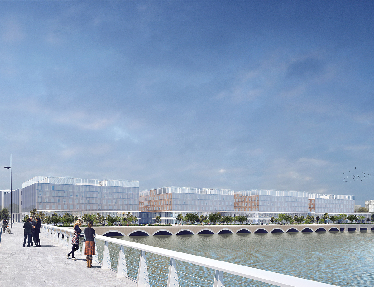 Photo ouverture © ARTBUILD PARGADE - Sur l’île de Nantes, le futur hôpital de la capitale des Pays de la Loire, moderne, écologique et connecté, se dessine en un modèle d’exemplarité d’architecture durable et d’inclusivité ; un investissement de 1,25 Md€ soutenu par l’Etat, la Région, Nantes Métropole, le CHU et l’Union européenne