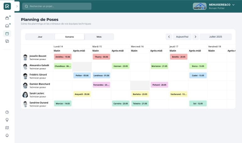 Le planning de pose Revel’Home se connecte à Kraftéo, ouvrant la voie à des fonctionnalités avancées comme le suivi de rentabilité chantier, les feuilles d’heures poseurs ou