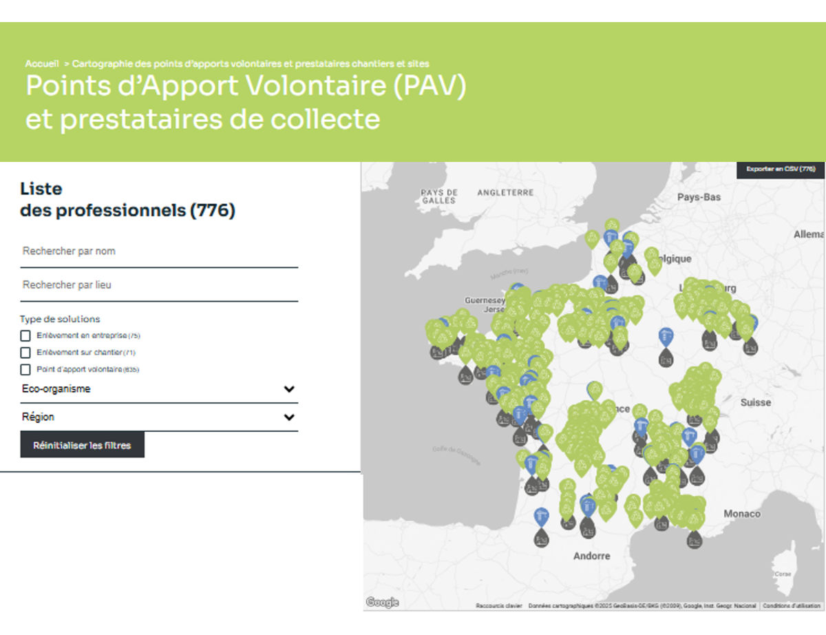 les informations souhaitées sur les points d’apport volontaire (déchetteries, distributeurs…), et sur les prestataires qui réalisent les enlèvements sur chantier et au sein des entreprises pour un recyclage des menuiseries en boucle fermée.