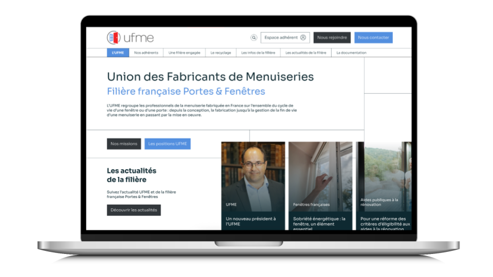L’UFME poursuit sa dynamique de modernisation avec la refonte de son site internet ufme.fr, portail moderne et complet, fruit de la fusion de ses trois anciens sites (choisirmafenetre.fr, parlonsisolation.fr et ufme.fr).