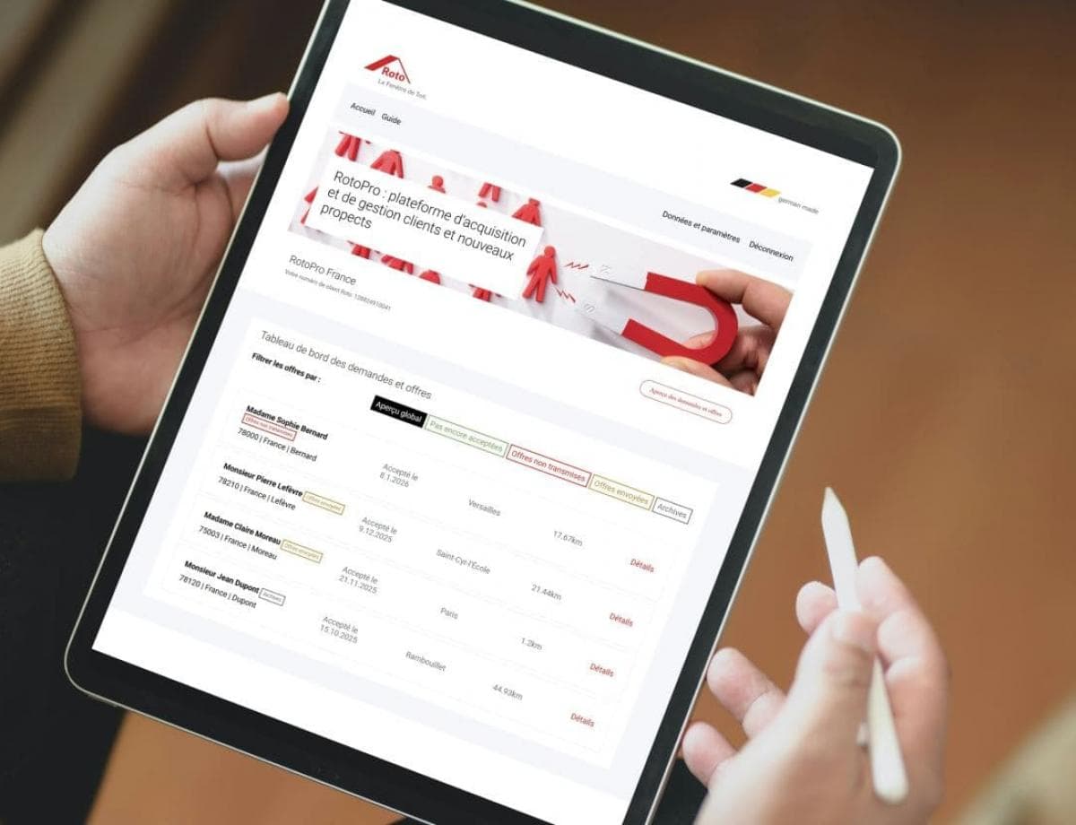 Le réseau Roto Plus se distingue par la mise à disposition d'une plateforme gratuite de génération de leads, véritable moteur de croissance pour les artisans membres. Cet outil numérique avancé aide les équipes à identifier précisément les prospects et à transformer les opportunités d’affaires en chantiers concrets.