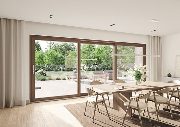 © Schüco International KG - Le nouveau Schüco FocusIngSlide offre de multiples possibilités d’agencement en grandes dimensions pour accueillir un maximum de lumière dans les espaces intérieurs