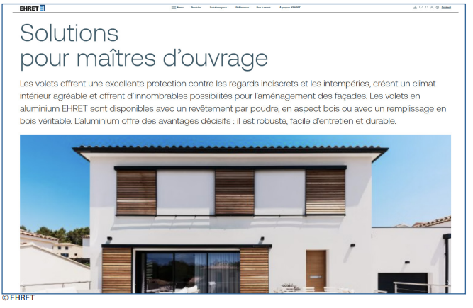 A l’image de son positionnement d’acteur majeur sur le marché des volets battants, Ehret dévoile la mise en scène de son nouveau site Internet au service de l’inspiration et d’une dimension professionnelle renforcée.