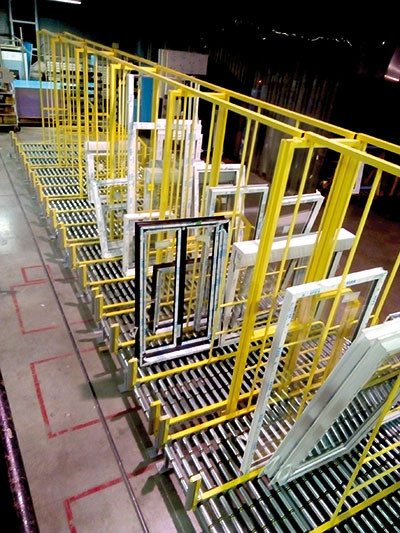 © Larenn - D.R. - Larenn conçoit des racks de stockage pour accueillir les produits finis ou semi-finis, à l’image de ces fenêtres. Les stocks tampons ainsi créés permettent de fluidifier la production