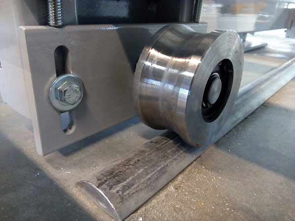 Basé à Couzeix, près de Limoges (87), le fabricant de machines Larenn a réalisé récemment une presse de vitrage deux en un pour Tryba : elle presse les éléments de la menuiserie à l’horizontale, puis en assure le transfert. Elle se déplace sur plusieurs mètres – sur rails, grâce à des galets – pour se positionner à l'entrée de convoyeur de stockage. Passant à la position verticale, elle fait glisser délicatement le produit pressé directement vers les convoyeurs de stockage grâce à un banc à rouleaux. Nul besoin de recourir à un chariot ou à un palonnier pour effectuer l’opération. La presse de vitrage, capable de déplacer un poids de 250 kg, retourne ensuite à sa position initiale.