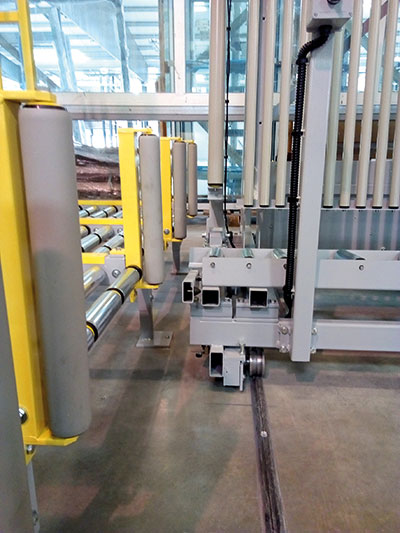 © Larenn - D.R. - Nouveauté intéressante de Larenn qui a imaginé une presse de vitrage et de transfert montée sur rails : elle est capable de presser une menuiserie puis d’aller la déposer directement en stock, évitant une étape de transbordement supplémentaire