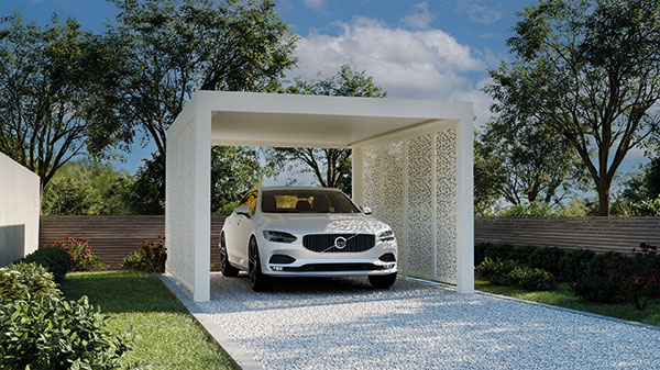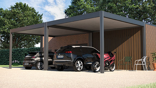 Alternative durable et innovante au garage, le carport s’affirme comme une solution d’abri pour les voitures, les vélos, les camping-cars… voire plus, selon les aménagements souhaités. Il protège les équipements contre les rayons du soleil et les intempéries. « Le carport est un marché en croissance, nous nous positionnons avec un carport à toit plat, Carisma A (jusqu’à 7 mètres de long sur 6 mètres d’avancée) et Carisma A+ (un module de 9 200 mm x 8 380 mm), afin de répondre à la demande de grandes dimensions tout en respectant les normes en termes de charge, notamment pour supporter le poids de la neige », indique Arnaud Botzung.