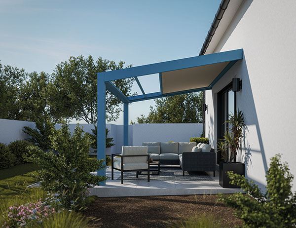 Aluglass – fabricant certifié Profils Systèmes – se positionne avec une offre de vérandas et pergolas bioclimatiques et désormais une pergola store. « Le store en toiture s’ouvre ou se ferme selon les besoins et la météo, ce modèle représente une alternative qualitative qui résiste mieux aux vents qu’un store banne », assure Emmanuel Vaufleury.