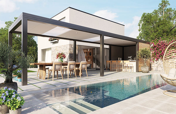 « Nous posons un regard plutôt optimiste sur les perspectives du marché de l’outdoor, car la tendance aux aménagements extérieurs s’installe durablement dans le paysage, nous sentons des signaux de reprise, sachant que les années post-Covid baissières (2023 à 2025) étaient la conséquence assez logique de l’activité record des années Covid », déclare Marc Bonamy, responsable commercial et marketing de Renson. Sans être dynamique, le secteur reprend des couleurs. En outre, observe Marc Bonamy, « des projets un peu hors normes émergent, dans l’habitat chez des particuliers ou dans le secteur du CHR, où la pergola se place aisément ». Le réchauffement climatique rend la protection solaire indispensable. Dans l’habitat, les particuliers s’équipent pour gagner en confort, les établissements café ou restaurant pour agrandir leur espace de vente et profiter davantage de leur terrasse. « Nous sommes confiants, le marché est presque mature, mais il reste du potentiel que nous pouvons capter si nous restons mobilisés pour accompagner les professionnels en proposant des produits alliant qualité et durabilité », estime à son tour Arnaud Botzung, directeur des ventes Groupe Burgermeister. « Nos objectifs restent prudents, compte tenu du contexte, néanmoins nous espérons progresser car après avoir conquis le Sud, la pergola s’installe un peu partout en France. Les canicules successives ont démontré son efficacité pour rafraîchir la maison à moindre coût », confirme Sébastien Tonda, chef de marché pergola chez Si Tech (Groupe Bouyer-Leroux).