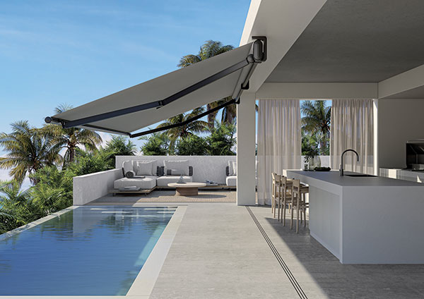Dans le secteur de la pergola bioclimatique, Marquises communique sur la disponibilité depuis juin 2025 de grandes dimensions avec la pergola Open R3 (plus de 7 mètres de large sur 4 mètres) qui bénéficie de profils renforcés. Cette pergola à double rétractation autorise une gestion des lames par zones (brevet déposé) et embarque de nombreuses options : store ZIP, Protect Lames, Open’It. « La double rétractation apporte de la flexibilité pour aménager un espace cuisine ou un jacuzzi, et surtout favorise l’entrée du soleil dans la maison », précise Patrick Joyeux, directeur commercial de Marquises. « Nous avons développé une nouvelle solution de fermeture latérale brise-vue – Klostra – pour jouer avec l’ombre et le soleil et nous élargissons les coloris des lames avec un ton bois », ajoute-t-il. Enfin, souligne Patrick Joyeux, « le positionnement tarifaire de ce modèle est compétitif car il est livré en un seul module ».