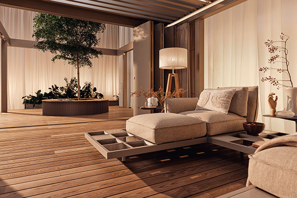 © Hanes Otte - Renson : Amani allie le confort à l’état pur, l’harmonie visuelle et l’ingénierie innovante dans un espace de vie extérieur sophistiqué et relaxant