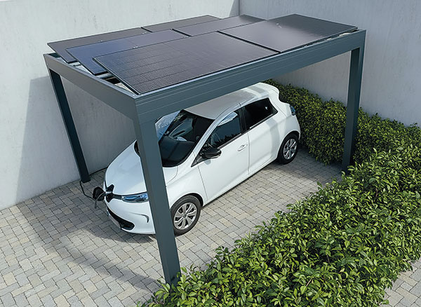 Aujourd’hui, le carport adopte l’énergie solaire qu’il produit et consomme. Ainsi, Sepalumic commercialise un carport aluminium à toiture photovoltaïque. « Cette nouvelle mouture repose sur une structure renforcée, identique à la solution de pergola Sepalumic offrant ainsi aux fabricants plusieurs possibilités pour concevoir des menuiseries outdoor uniques », commente Thomas Issautier, chargé de communication et marketing digital Sepalumic. « Ce nouveau système de carport solaire a été conçu pour simplifier le travail de fabrication : assemblage de la structure en coupe droite, assemblage de la gouttière en coupe droite ou coupe d’onglet, intégration des chemins de câblage dans la structure ». Grâce à son toit composé de panneaux photovoltaïques, le carport capte l’énergie solaire pour alimenter un bâtiment et/ou recharger une voiture. En outre, signale Thomas Issautier, « ce carport solaire 2.0 se distingue par une meilleure tenue mécanique, un maintien optimal des panneaux solaires, ainsi qu’un design moderne ».