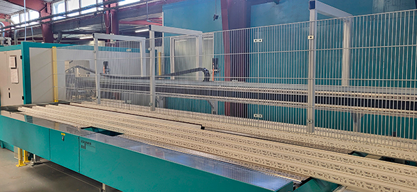 Au premier semestre 2024, un troisième centre d’usinage Schirmer avait été installé pour un coût de 1,7 M€. « Nous l’avons installé en U pour des raisons pratiques, c’est un centre toutes options qui permet de réduire le temps de production et d’améliorer encore la qualité », se félicite le directeur de l’usine. Un centre d’usinage qui permet entre autres l’usinage des fibres pour la couleur et le marquage au laser des codes-barres et certification du CSTB. Dernier investissement majeur dans les machines, le remplacement d’une ligne de soudure d’ouvrants par une ligne automatisée. « La précédente datait de 2004, il était donc venu le temps de la changer et nous sommes désormais parfaitement dotés », se réjouit Stéphane Delort. Une ligne qui intègre aujourd’hui des tours de stockage pour mieux gérer les flux de produits, mais aussi deux tables de ferrage. Trois soudeuses sont également présentes sur la ligne, ainsi qu’une visseuse quatre têtes. Résultat, une réduction de 70 % des manutentions grâce à des transferts automatisés qui déplacent les produits à plat sans besoin de les retourner. À cela s’ajoute une diminution des opérations de vissage de quincailleries par les opérateurs, tâches réalisées à 100 % par une unité robotisée en fin de process. « Nous estimons le gain de productivité à 25 % », confie Stéphane Delort, « avec une augmentation de la capacité de production de 20 %. Le tout en éliminant totalement le risque de TMS pour les opérateurs ».